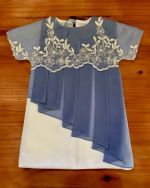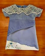 This is quite a striking wedding gown, with layers of tulle and exquisitely beaded lace. The gown is complimented with a striking train and lace up detail in the back.