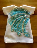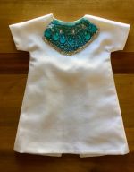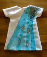 All four of the wedding gowns are in a simplistic, but timeless, A-line design. Three of them are done in an off-white duchess satin with two of them having beaded bodices and the other one finished off with a chiffon overlay and beautiful flower details. The fourth one is done in a thai-silk with contrasting blue chiffon and bead detail.