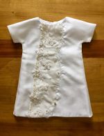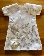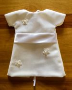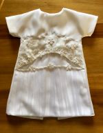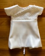 A total of 37 Angel Gown® garments were repurposed from these four wedding gowns, which I processed as a group. They include 7 newborns, 10 Preemies, 8 Tinys and 12 Micros. Some of the trim incorporated into these Angel Gown® garments were donated by Carin.